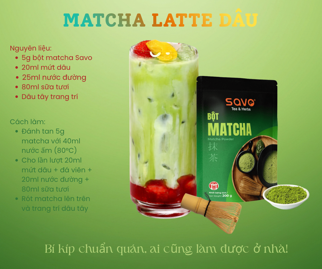Công thức Matcha Latte Dâu vừa giữ hương vị trà xanh thanh khiết, vừa có vị dâu ngọt ngào!